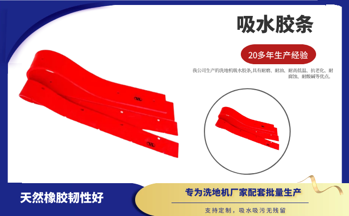 產(chǎn)品說(shuō)明:吸水膠條是洗地機(jī)吸水扒上的重要部件,作用就是與地面接觸,產(chǎn)生一個(gè)密封的空間,把地面上的污水通過(guò)風(fēng)機(jī)進(jìn)行回收。吸水膠條一般分為耐油型(進(jìn)口PU原料)和普通型(進(jìn)口NR原料)兩種。